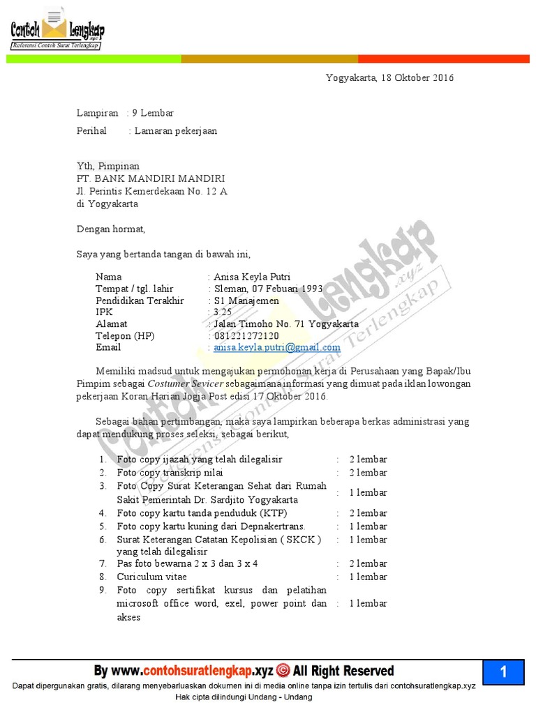Contoh surat lamaran kerja umum, bank, karyawan, alfamart, pt, sekolahan, formal, fresh graduate, bahasa inggris, via email, tulis surat lamaran kerja adalah surat yang digunakan untuk melakukan permohonan mendapatkan pekerjaan sesuai pengalaman pada perusahaan tertentu. Yang membedakan ialah alasan melamar dengan lampiran. Berbagai perusahaan swasta berdiri di indonesia dan tersebar di berbagai daerah. Contoh surat lamaran kerja di hotel i. Di mana surat lamaran pekerjaan adalah surat yanbg bertujuan untuk memberitahukan niat kita untuk mendapatkan suatu pekerjaan di tempat.